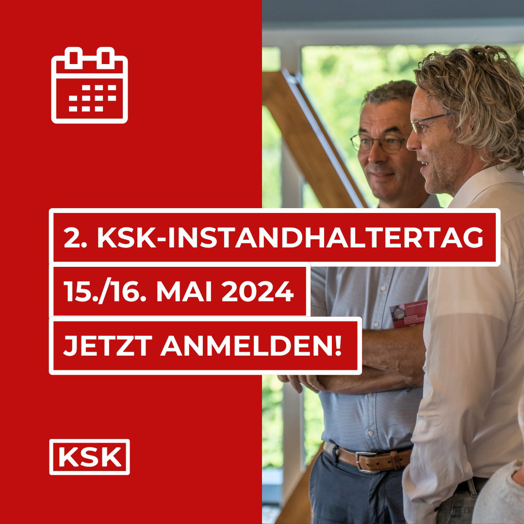 Der zweite KSK-Instandhaltertag findet am 15./16. Mai 2024 in Haltern am See statt.