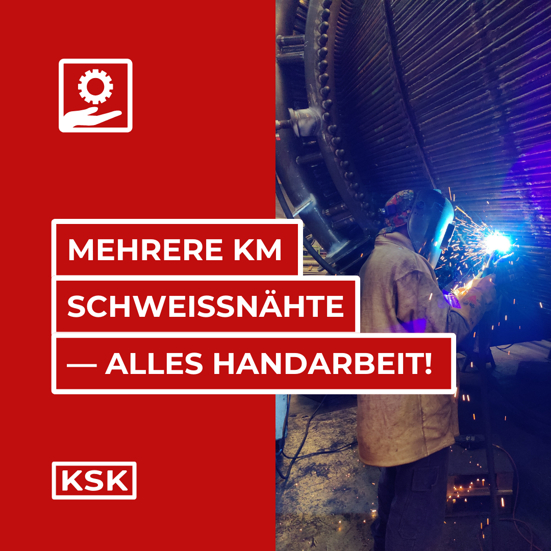 In so einem Bauteil steckt extrem viel Arbeit, insbesondere Handarbeit in der Fertigung. So haben allein unsere Schweißer mehrere Kilometer Schweißnähten gezogen, um die Konverterhaube "gasdicht" abzudichten.